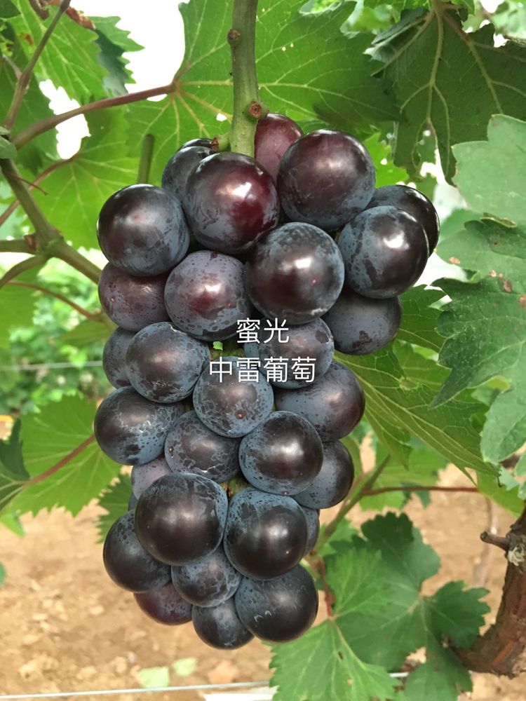 蜜光:河北省昌黎果樹研究所2013年育成的葡萄新品種;利用巨峰品種作母本,早黑寶品種作父本;成熟早,香味濃,糖度高,果粒大,結(jié)果早,豐產(chǎn)能力強(qiáng)。